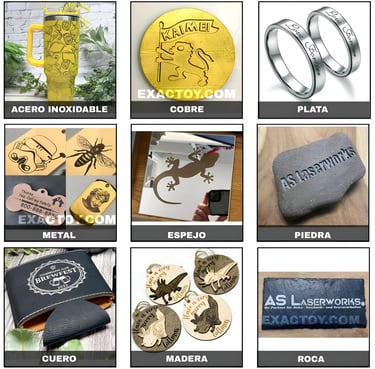 EN 3D RESINA Y FILAMENTO, A MULTICOLOR O PINTADO. GRABADOS EN UNA VARIEDAD MUY GRANDE DE MATERIALES (A COLOR SOLO EN ACERO INOXIDABLE) CON RELIEVES Y CORTES PRECISOS