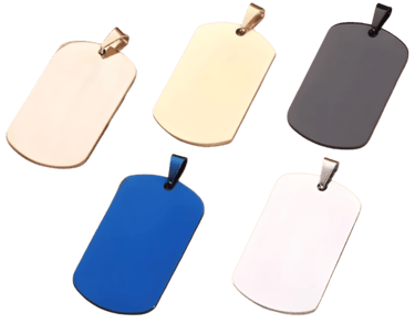 Diferentes colores de placas, gomas e incluso se puede grabar en color (solo en acero inoxidable)