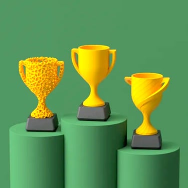 Puedes imprimir trofeos, reconocimientos en diferentes colores, como acabado metalico, pulido, etc